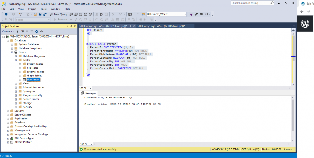 In SQL SERVER, the majority, if not all, structural objects can be created in in two different ways. It can be done manually using SQL Server Management Studio (SSMS) or it can be done by using SQL scripts, using the command line, SSMS or other tools out there.